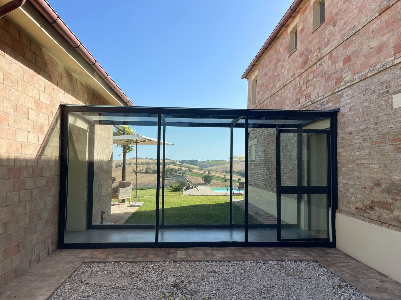Alba al casale. Un’esclusiva di Marche Casa. I colori, sono i colori della campagna circostante che vi faranno sognare, l’alba invadente che vi sorprende a letto, il verde lussureggiante dei campi che si preparano alla vita in primavera, il giallo brillante del grano che ondeggia al vento a giugno o i girasoli allegri che vi osservano, persino il marrone della terra che riposa in autunno vi appare stupendo. E poi il silenzio, il silenzio della campagna, quella quiete serena che vi pervade, che si impossessa piano piano del vostro cervello che stacca la spina, si riposa…..e poi all’improvviso il suono giocoso delle risate dei vostri figli che saltano in piscina, dei vostri amici che cucinano, che fanno il BBQ sotto la pergola, i suoni della vita quella vera, quella che merita di essere vissuta che si anima qui, nel vostro casale, nel casale che avete acquistato dove potete essere felici, nel casale che avete trovato finalmente e che è perfetto per tutte le vostre esigenze. La proprietà è perfetta per essere vissuta da una famiglia e/o come investimento per affitti stagionali. Un casale di 250mq (200mt la casa principale + 50mt della zona cucina collegata dallo scenografico corridoio acciaio e vetro), un giardino di 3200mq con prato ed irrigazione automatica, possibilità di ricostruire un fienile di 80mq da poter adibire anche a dependance, strada di accesso privata ed una piscina 10×5 con spiaggetta per i più piccoli ed una zona solarium pavimentata di 50mq. Gli spazi sono ampi e molto luminosi, la luce penetra dalle grandi vetrate al piano terra che si fa tutt’uno con gli esterni, su questo piano all’ingresso trovate un doppio salone dalle cui grandi aperture potete godere della vista sulla piscina e sulle colline, la cucina (Lube), ha un tocco industriale con il suo pavimento in cemento ed il grande tavolo su misura anch’esso cemento e acciaio, ma non è un ambiente freddo, anzi, la luce che riceve dalla grande vetrata la fonde con la pergola, e ciò che sta dentro è come se stesse fuori e viceversa. Dotata di tutti gli elettrodomestici e piano ad induzione, ha una grande isola con doppio lavabo, immaginatevi a cucinare qui ed alzare lo sguardo verso i 25mq di pergola coperta dal glicine, il panorama si apre e vi farà innamorare. Su questo piano la prima master con bagno in camera, bagno dotato di doccia e vasca separate, vi è anche una camera più piccola a fianco. La scala con ringhiera in vetro conduce al piano superiore dove troverete un salotto aperto perfetto per guardare la tv, un ampio disimpegno, la seconda master con bagno in camera ed altre 2 camere con 1 bagno condiviso che può diventare con un semplice gesto il bagno in camera di una delle due. Tutti i bagni sono finestrati ed hanno almeno una doccia. Al piano terra ma con ingresso esterno c’è una grande lavanderia utilissima anche per riporre le cose. I proprietari hanno cercato di dare alla proprietà un tocco moderno mantenendo però il gusto tipico delle case di campagna che ritrovate non solo all’esterno con i suoi mattoni originali ma anche nelle travi a vista e nei materiali caldi del piano notte. Non mancano le comodità, con il sistema di riscaldamento e raffrescamento a pavimento su tutta la casa, aria condizionata, sistema di domotica per il controllo da remoto, wi-fi stabile e veloce. Il casale è stato ristrutturato completamente nel 2019 secondo tutte le normative antisismiche, dalla fondazione al tetto, è stato fatto il vespaio areato, il cordolo perimetrale esterno, tetto in legno coibentato, infissi nuovi triplo vetro, finestrone della cucina che si apre completamente, pergola in legno con pavimentazione in cemento ricoperta con mattoni vecchi, solarium con base in cemento e mattone da esterno, piscina interrata con vasca in cemento armato. Documentazione fotografica disponibile. Il casale viene venduto arredato con tutte le suppellettili della cucina e delle camere, incluso anche il robot per la pulizia della piscina. Immobile a reddito con successo sulle migliori piattaforme. Alba al casale è tutto ciò che stai cercando.
