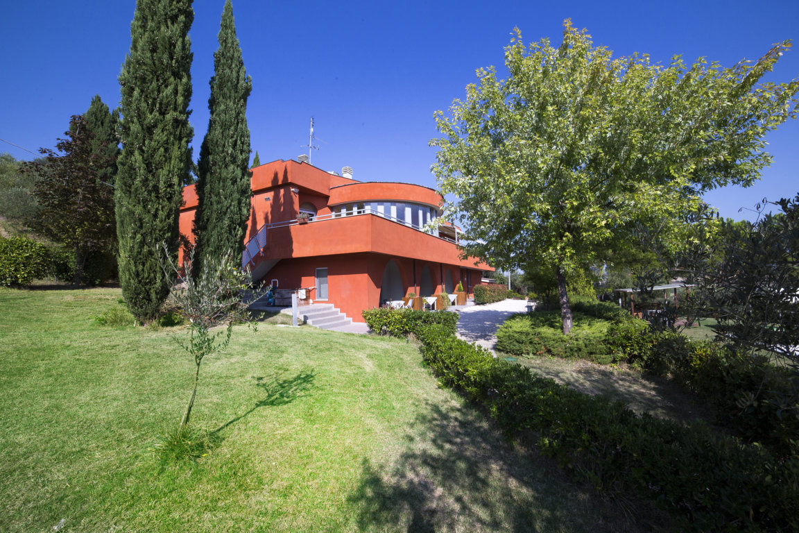 VILLA CLARA. Morro d’Alba è un luogo incantevole, pieno di storia e tradizione, famoso anche per il suo pregiato vino rosso DOC, il Lacrima, colline di filari di viti a circondare questo splendido borgo. Qui si vive ancora in modo autentico e semplice, le giornate non sono scandite dalla frenesia e dal caos ma dalla quiete e dall’ordine. Un centro storico con delle mura uniche al mondo che affacciano su colline verdeggianti che degradano verso il mare (a 20min le famose spiagge di velluto di Senigallia).… basterebbe questo per desiderare di trasferirsi qui….e questa proprietà che vi propongo in esclusiva può solo aggiungere il tassello definitivo per fare la vostra scelta. Villa Clara è un gioello immerso nel verde, avvolta dal silenzio della campagna ed affacciata sulle morbide colline circondata da olivi. Nasce come attività recettiva (accatastata come D/2) ma potrebbe anche essere utilizzata come abitazione familiare o plurifamiliare apportando alcune modifiche. La proprietà è davvero incredibile e già il viale di ingresso alberato con pini maestosi vi invita in un ambiente privato, unico dove regna la privacy e la discrezione. La villa è perfetta per chi vuole intraprendere un’attività recettiva in quanto troverete già tutto pronto e potreste iniziare la vostra nuova vita, anche lavorativa, immediatamente. Gli spazi sono curati e luminosi, il giardino di oltre 2000mq, è ricco di alberi ed angoli suggestivi e la grande piscina (50mq circa, h 1.40, filtro a sabbia) con un ampio solarium dove rilassarsi, un invito a godere del sole e della quiete del luogo. La villa si sviluppa su 2 piani per un totale di oltre 500mq + 50mq di un edificio adiacente al momento adibito a cucina, uno spazio esterno per mangiare, un’area perfetta per cene, feste, eventi aziendali…. Nella villa in totale ci sono 11 camere (tutte con AC) e 12 bagni, un grande salone comune, una cucina e vari spazi di servizio. Gli ambienti al momento sono così suddivisi: al piano terra direttamente affacciati sul giardino con ingresso indipendente troverete 3 appartamenti (2 con salotto/cucina openspace, 1 camera e bagno ed 1 con cucina/salotto openspace abbellito da un bel caminetto, 2 camere ed un bagno). Sullo stesso piano altre 2 camere matrimoniali con bagno interno, un ampio ingresso che funge da reception ed una scala molto scenografica che conduce al piano primo. Vi accorgerete subito della luce che arriva nell’ampia area comune, un camino molto grande e particolare abbellisce e scalda l’ambiente, la terrazza che affaccia sulle colline, sul giardino e la piscina invita a godere della compagnia altrui. Sempre su questo piano una stanza che si può adibire a cucina, un bagno di servizio, ed altre 5 camere matrimoniali tutte ovviamente con bagno in camera. Ottimi gli infissi, le porte e gli arredi (inclusi nel prezzo), praticamente non dovrete pensare a nulla altro che godervi la proprietà ed avviare il vostro business che sia B&B, country house o affitto dell’intera struttura. Se poi la voleste usare come villa privata, con poche semplicissime mosse, si possono aprire/chiudere gli ambienti per rendere il tutto più vivibile per una o più famiglie. Le foto e questa descrizione possono illustrarvi la villa ma solo assaporare con i vostri sensi ogni angolo vi farà innamorare, vi aspettiamo per farvi conoscere Villa Clara, un luogo dove lascerete il cuore. Per altre informazioni chiamate Marche casa.